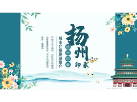 青色古典中国风“扬州印象”城市介绍旅游推介PPT模板