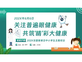 绿色卡通“关注普遍眼健康共筑睛彩大健康”全国爱眼日主题班会PPT模板
