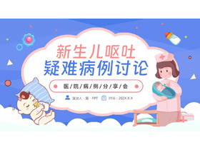 这是一套蓝色怀抱婴儿的护士背景新生儿呕吐疑难病例讨论PPT模板,共24页;