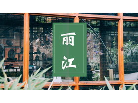 整套PPT模板以绿色为主色调,设计风格精美杂志风;PPT模板封面使用了精致木窗摄影背景图片;内容页包含多张丽江风景插图、丽江建筑插图、街道夜景插图等装饰,突出了旅行相册主题。