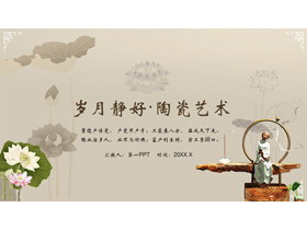 古典荷花陶艺少女背景“岁月静好陶瓷艺术”PPT模板