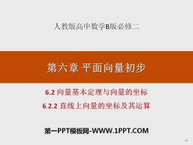 关键词:高中人教B版数学必修二PPT课件免费下载,向量基本定理与向量的坐标PPT下载,平面向量初步PPT下载,直线上向量的坐标及其运算PPT下载,.PPT格式;