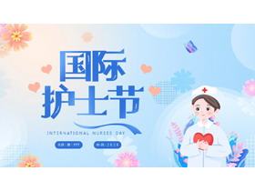 这是一套蓝色卡通护士背景国际护士节通用PPT模板,共23页;