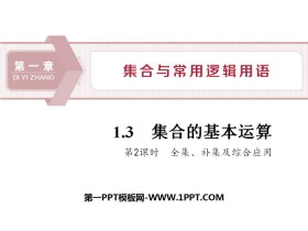 关键词:高中人教A版数学必修一PPT课件免费下载,集合的基本运算PPT下载,集合与常用逻辑用语PPT下载,全集补集及综合应用PPT下载,.PPT格式;