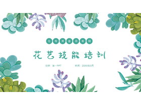 绿色花卉花草背景花艺技能培训PPT模板下载
