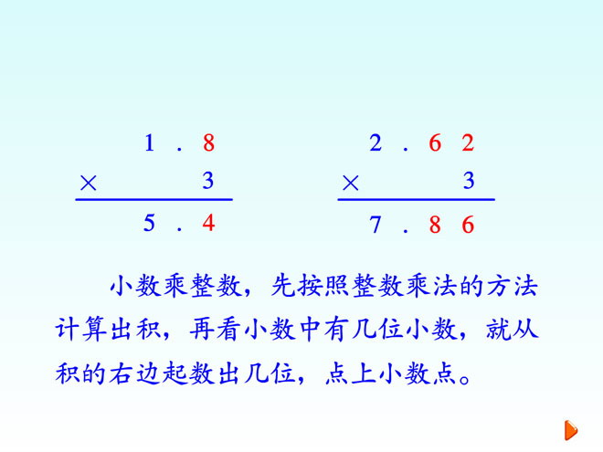 关键词:小数乘法教学课件,小数乘整数教学课件,冀教版五年级上册数学Flash动画课件下载,五年级数学动画课件下载,小数乘法Flash课件下载,小数乘整数Flash课件下载,.SWF格式;