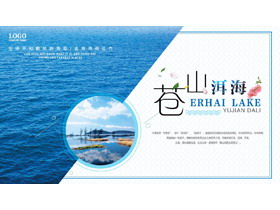 蓝色海水背景苍山洱海旅游日记PPT模板下载