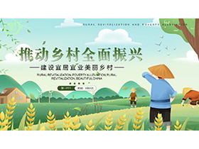 绿色清新插画风“推动乡村全面振兴”PPT模板下载