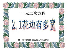 关键词:一元二次方程教学课件,花边有多宽教学课件,北师大版九年级上册数学PPT课件,九年级数学幻灯片课件下载,一元二次方程PPT课件下载,花边有多宽PPT课件下载,.ppt格式