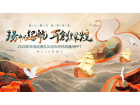 古典国潮风“扬帆起航再创辉煌”蛇年颁奖典礼年会年终总结通用PPT模板