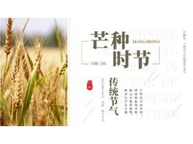 这是一套麦穗麦田背景的芒种时节传统节气介绍PPT模板,共20页;