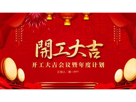 红色大气喜庆开工大吉会议暨年度计划PPT模板