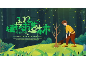 绿色插画风“植树造林关爱环境”植树节节日介绍PPT模板