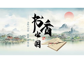 古典中国风背景的“书香中国”世界读书日PPT模板