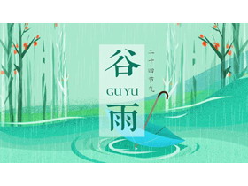 这是一套绿色清新雨伞树林背景的谷雨节气介绍PPT模板,共30页;