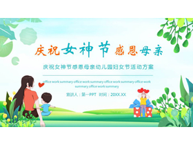 这是一套庆祝女神节感恩母亲幼儿园妇女节活动方案PPT模板,共21页;
