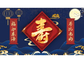 蓝色古典中国风老人生日寿宴贺寿PPT模板