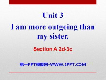 关键词:《I'm more outgoing than my sister》教学课件,人教新目标版八年级上册英语PPT课件下载,八年级英语幻灯片课件下载,《I'm more outgoing than my sister》PPT课件下载,.PPT格式;