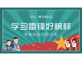青色卡通风格的学习雷锋好榜样主题班会PPT模板