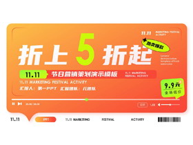 红橙渐变双十一“折上5折起”节日营销策划演示PPT模板
