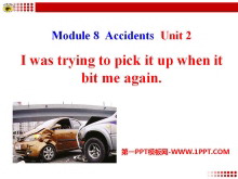 关键词:《I was trying to pick it up when it bite me again》教学课件,外研版八年级上册英语课件,八年级英语幻灯片课件下载,《I was trying to pick it up when it bite me again》PPT课件下载,.ppt格式