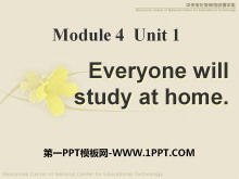 关键词:《Everyone will study at home》教学课件,外研版七年级下册英语课件,七年级英语幻灯片课件下载,《Everyone will study at home》PPT课件下载,.ppt格式