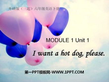 关键词:《I want a hot dog,plaese》教学课件,外研版三起点六年级下册英语课件,六年级英语幻灯片课件下载,《I want a hot dog,plaese》PPT课件下载,.ppt格式