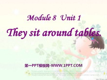 关键词:《They sit around tables》教学课件,外研版一起点五年级上册英语课件,五年级英语幻灯片课件下载,《They sit around tables》PPT课件下载,.ppt格式