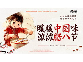 红色中式水彩风“暖暖中国味浓浓腊八节”幼儿园腊八节活动PPT模板
