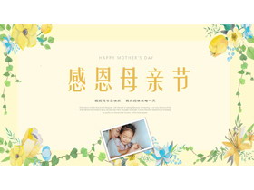 黄色卡通花卉背景的感恩母亲节纪念相册PPT模板