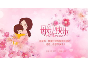 粉色卡通花卉背景的母亲节快乐PPT模板