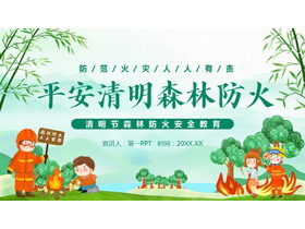 这是一套绿色卡通消防员背景的“平安清明森林防火”清明节森林防火安全教育PPT模板,共19页;