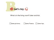 本课件通过动画的形式将《There is a big bed》中的let's try展示给学生,形象生动,趣味性强,是很好的英语教学辅助课件。