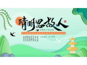 这是一套绿色“清明思故人”中小学缅怀先烈致敬英雄清明节主题班会PPT模板,共24页;