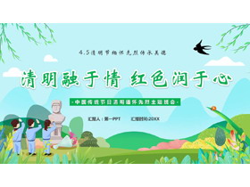 绿色“清明融于情红色润于心”中国传统节日清明缅怀先烈主题班会PPT模板