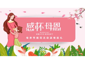 红色清新卡通风格的“感怀母恩”母亲节插花活动温情献礼PPT模板