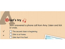 本课件通过动画的形式将《Where did you go?》中的lets try展示给学生,通过听力练习和判断题提高学生的英语能力,是很好的英语教学辅助课件。