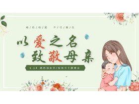 这是一套绿色卡通母亲背景的“以爱之名致敬母亲”母亲节主题班会PPT模板,共24页;