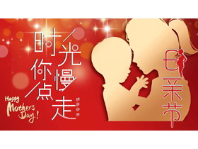 红色母亲人物剪影背景的“时光你慢点走”感恩母亲节PPT模板