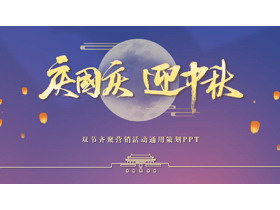 这是一套蓝紫配色“庆国庆迎中秋”双节齐聚营销活动通用策划PPT模板,共19页;