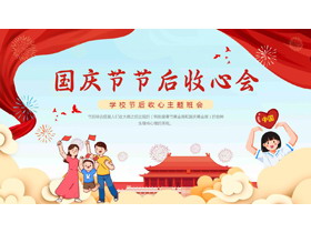 红色卡通风格的国庆节节后收心会主题班会PPT模板