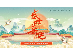 精美国潮群山背景的“盛世华诞”国庆节主题PPT模板