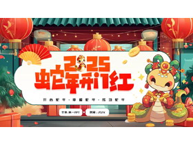 这是一套红色精美插画风“蛇年开门红”新年主题通用PPT模板,共24页;