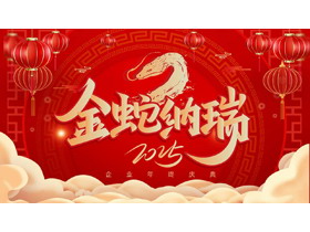 红金喜庆“金蛇纳瑞”企业年终庆典PPT模板
