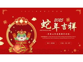这是一套红色喜庆卡通风格的蛇年吉祥年终工作总结新年计划PPT模板,共20页;
