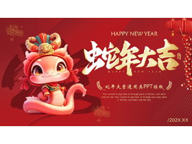 红色喜庆卡通小蛇背景的蛇年大吉通用PPT模板