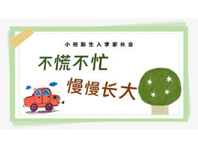 绿色手绘风“不慌不忙慢慢长大”幼儿园小班新生入学家长会PPT模板下载