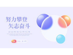 彩色毛玻璃圆点背景的“努力攀登矢志奋斗”企业项目工作汇报PPT模板下载