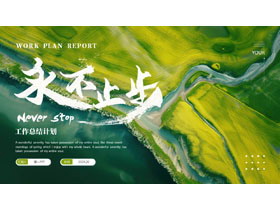 绿色广袤农田背景的“永不止步”工作总结计划PPT模板下载