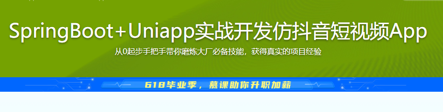 短视频在未来几年都是风口,许多公司都在朝这个方向进行业务的拓展,蛋糕非常大。本课程将从0起步,带你使用新版SpringBoot技术结合Uniapp,完成当下流行的仿抖音短视频项目。通过完整的项目历练,无论是作为毕设,还是丰富项目经验,都会让你在众多竞争者中脱颖而出。